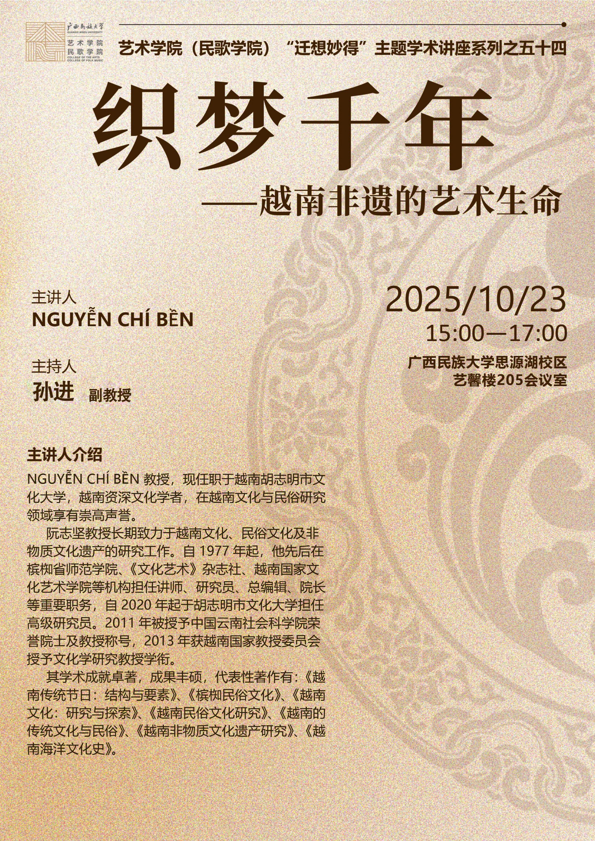 NGUYỄN CHÍ BỀN 教授,现任职于越南胡志明市文化大学,越南资深文化学者,在越南文化与民俗研究领域享有崇高声誉。